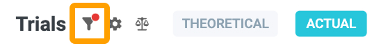Theoretical and Actual filters can be applied through the buttons above the Trials table, as well as through the Filters icon.